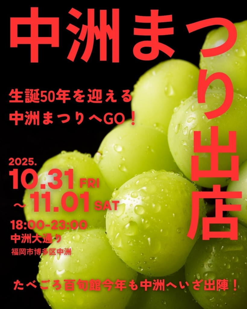 来る10月31日金曜日、11月1日土曜日の2日間開催される中洲まつりへ百旬館が出店します。