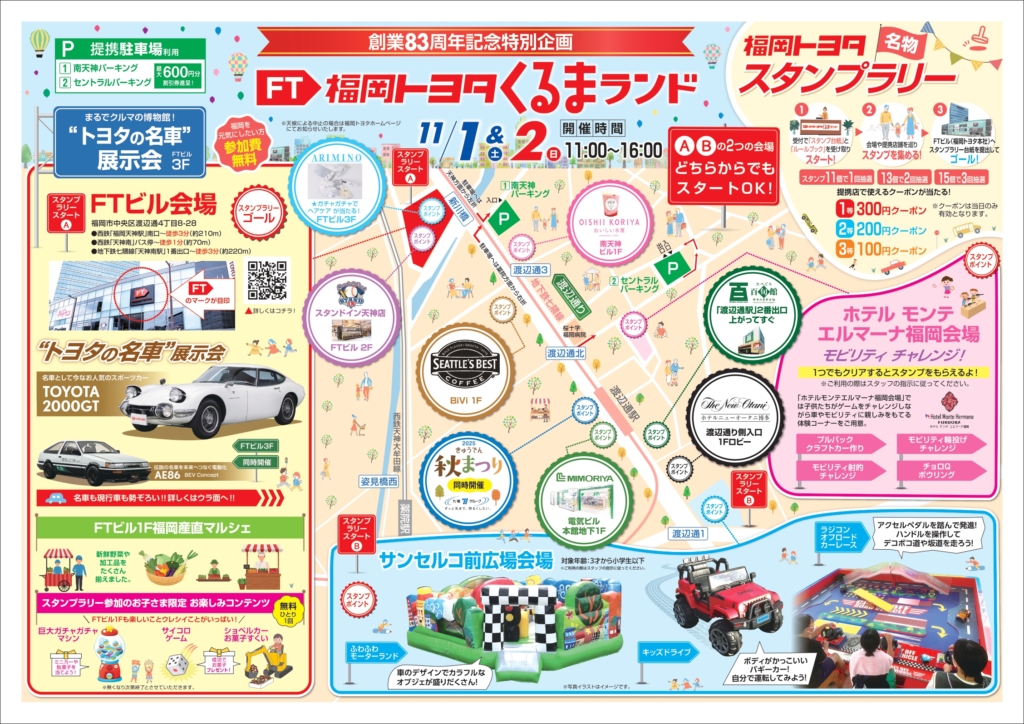 11月1日(土)〜2日(日)福岡トヨタ のスタンプラリーに、たべごろ百旬館も参加店として登場いたします。 当店軒先にてスタンプを押して、秋のお出かけ&お買い物をお楽しみください。新鮮な食材を活かした海鮮丼・寿司・お弁当も豊富にご用意しております!