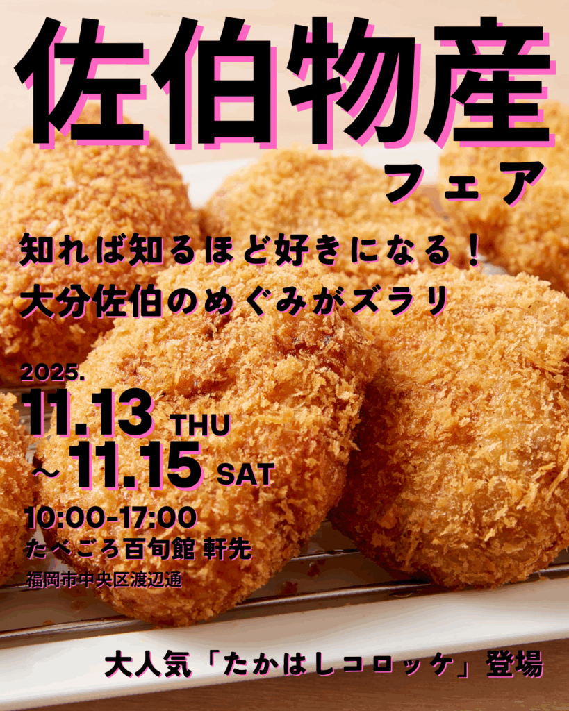 今回のフェアでは、揚げたてがたまらない「たかはしコロッケ」の実演販売や、ほっと心がほどける“ごまだし”のお出汁試飲をご用意いたします。海と山の恵みがまっすぐに伝わる、どこか懐かしくあたたかい佐伯の味を、ぜひこの機会にお楽しみください。特産品も多数並びます!