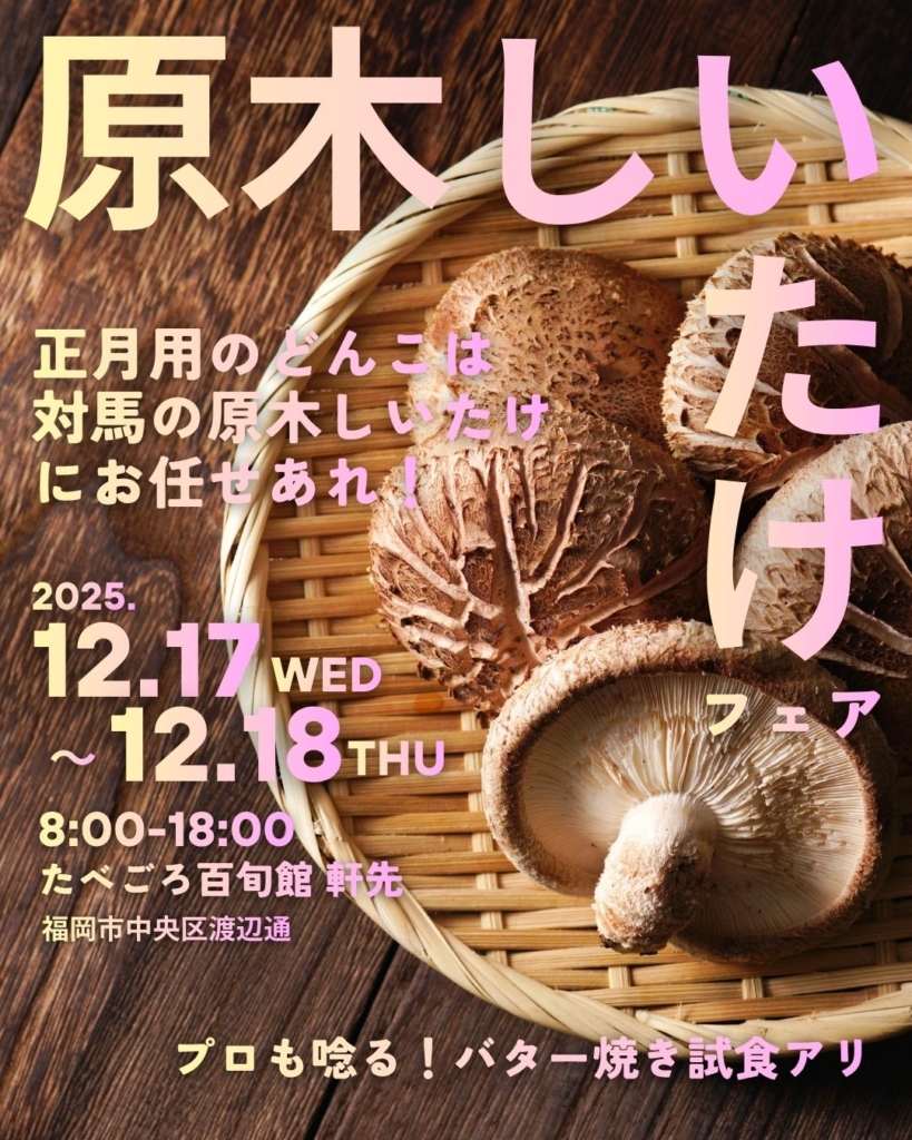 来る12月17日水曜日より2日間限定にて対馬原木しいたけフェアを開催します。