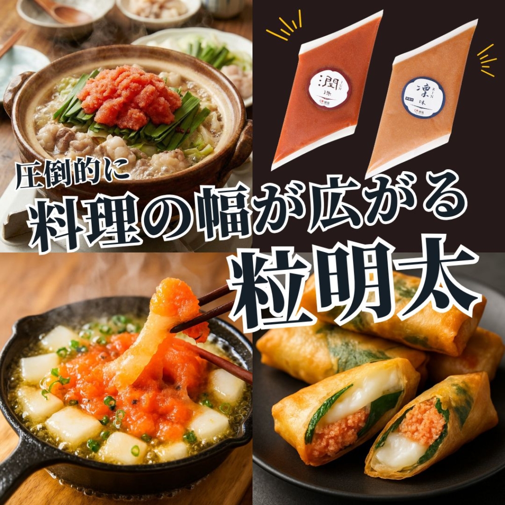 洋食に映える濃厚な〈潤珠〉、和食に寄り添う上品な〈凛珠〉。業務用として開発した本格粒明太子を、今回だけの特別価格でお買い求めいただけます。飲食店の明太子メニューにはもちろん、ご家庭でも気軽にたっぷりご使用いただける商品です。