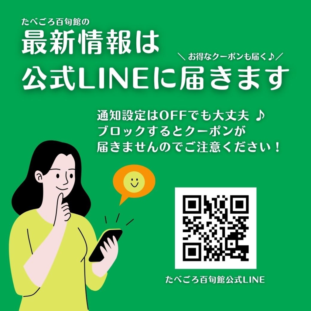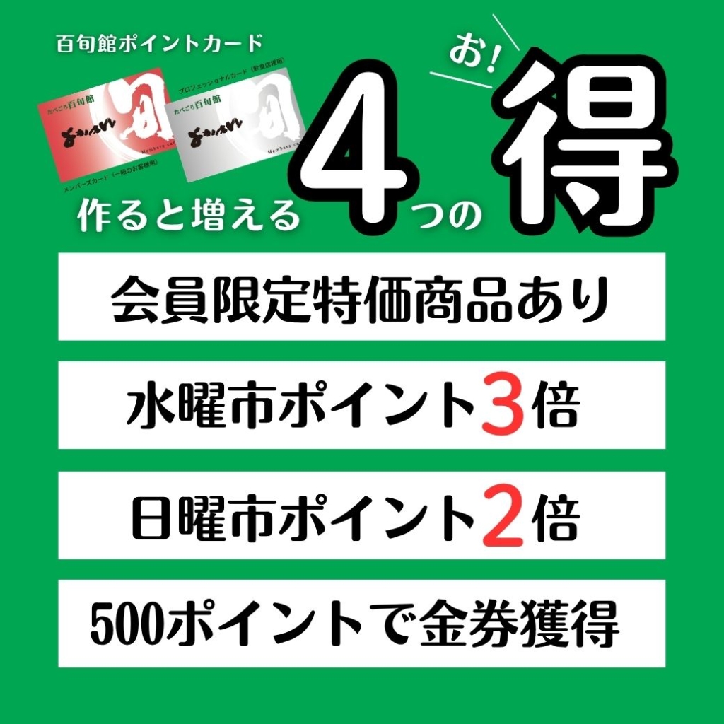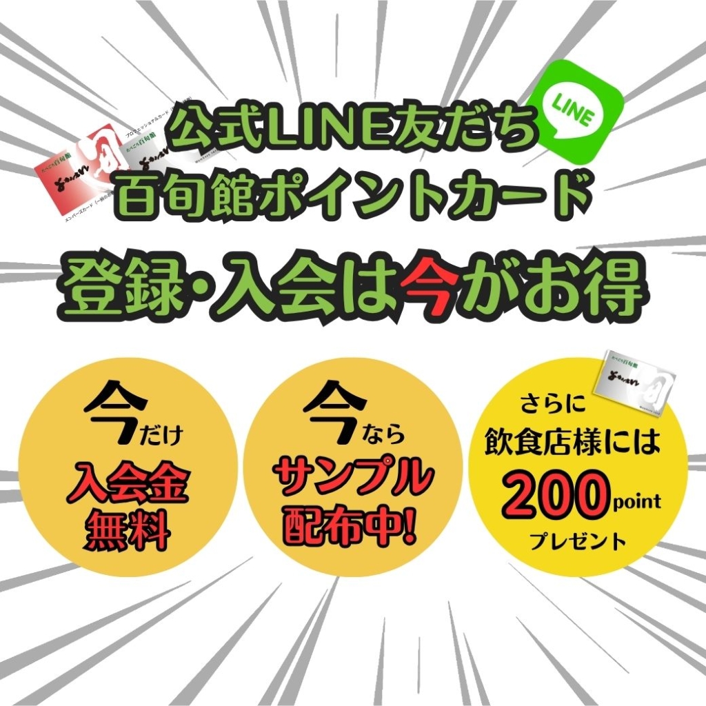 いつもたべごろ百旬館をご愛顧いただきまして誠にありがとうございます。ただいま、公式LINE友だち登録・百旬館ポイントカード入会について、期間限定のご案内を実施しております。